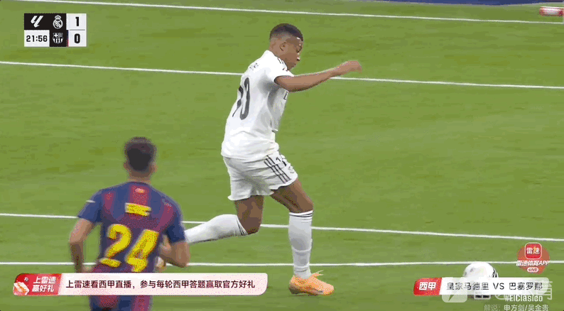 雷速体育10月26日讯 西甲第10轮,西班牙国家德比,皇家马德里坐镇主场伯纳乌迎战巴塞罗那。比赛第22分钟,姆巴佩接贝林厄姆直塞先拔头筹。姆巴佩进球GIF 由此,姆巴佩将个人五大联赛的进球数提升至233球,追平了亨利在该项数据上的纪录。法国球员五大联赛进球数前三1、本泽马 2812、拉孔贝 2553、姆巴佩 2333、亨利 233