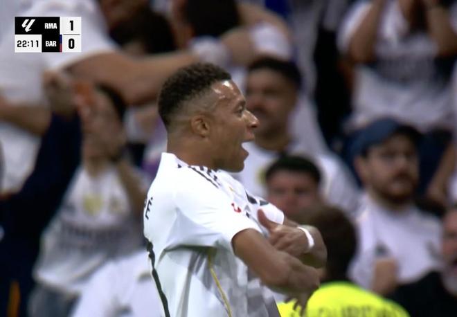 西甲第10轮国家德比,皇家马德里主场对阵巴塞罗那,上半场姆巴佩破门为皇马取得领先,至此,姆巴佩对阵巴萨已打入12球,且连续4场国家德比取得进球。此役主场对阵巴塞罗那,姆巴佩在比赛第22分钟破门,为皇家马德里取得1-0领先。至此,姆巴佩职业生涯9次对阵巴萨已打入12球,仅次于他对阵蒙彼利埃(15球)和里昂(13球)的进球数。此外,姆巴佩最近4场西班牙国家德比都有进球斩获,一共打入6球。